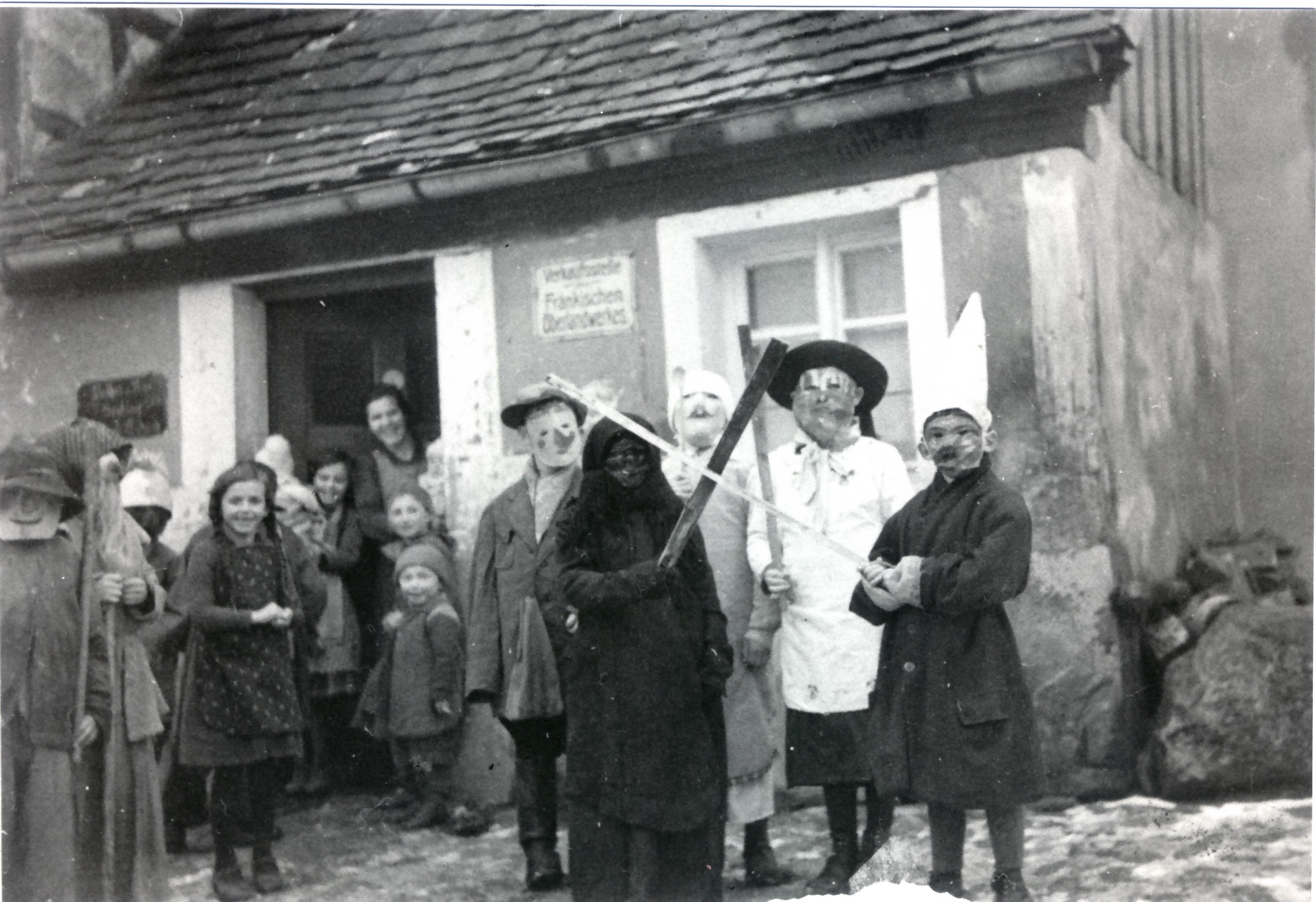 Fasching 1939 vor dem Anwesen Erhard jetzt Magnani I 3. Februar 2019 Fasenacht in Unterampfrach? 2180 × 1495