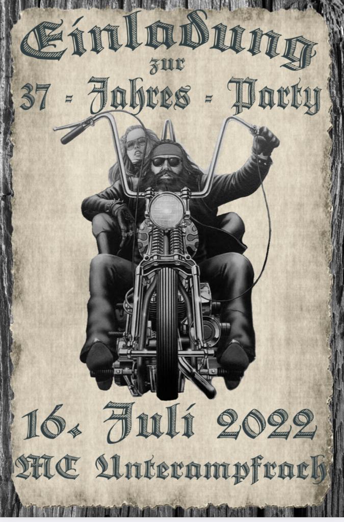 Einladung zur 37-Jahres-Party des MC Unterampfrach von Ampfri Veröffentlicht am 23. Juni 20223. Mai 2023 Teilen mit: Klicke, um auf X zu teilen (Wird in neuem Fenster geöffnet) X Klick, um auf Facebook zu teilen (Wird in neuem Fenster geöffnet) Facebook Klicken, um auf WhatsApp zu teilen (Wird in neuem Fenster geöffnet) WhatsApp Gefällt mir Wird geladen … Ähnliche Beiträge