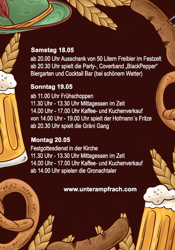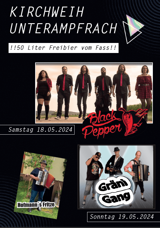 Kirchweih Unterampfrach 2024 von Ampfri Veröffentlicht am 3. Mai 2024 Teilen mit: Klicke, um auf X zu teilen (Wird in neuem Fenster geöffnet) X Klick, um auf Facebook zu teilen (Wird in neuem Fenster geöffnet) Facebook Klicken, um auf WhatsApp zu teilen (Wird in neuem Fenster geöffnet) WhatsApp Gefällt mir Wird geladen … Ähnliche Beiträge