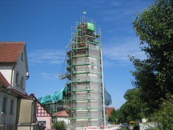 Kirchturm im Korsett Die Arbeiten zur Kirchensanierung gehen zügig voran. Um an jeden Punkt des…
